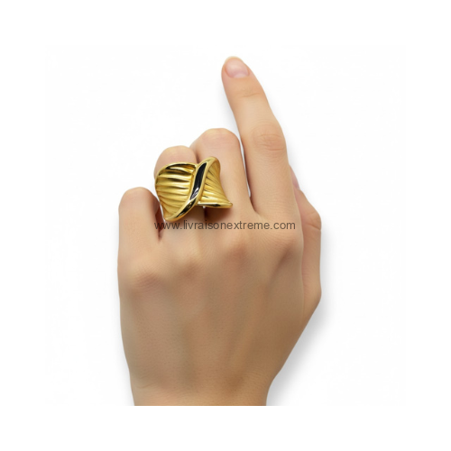 💍 Bague “Ondes d’Or” – Dorée & Design Sculptural Élégant