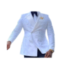 • Veste croisée : La veste est de type croisé, avec un boutonnage double qui ajoute à son style distinctif.