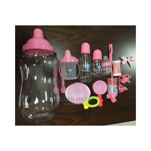 - Design pratique : L’ensemble est rangé dans une grande tirelire en forme de biberon, ce qui le rend idéal comme cadeau de naissance ou pour organiser les articles de bébé.