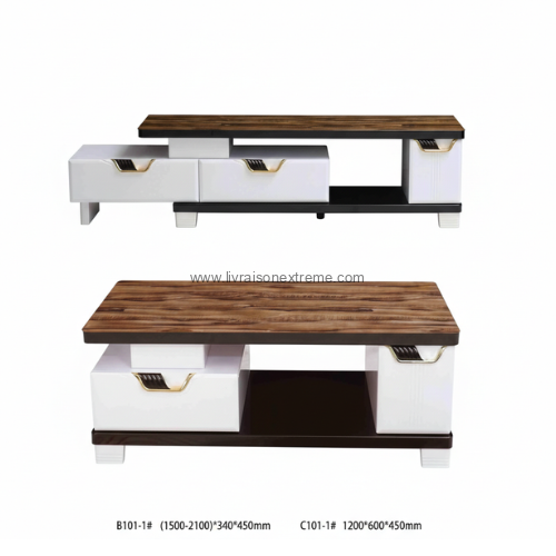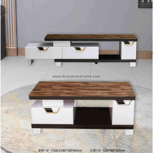 Coffee Table 1.2m + TV Table 1.5m – Couleur Brown Gold