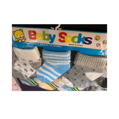 Taille : 0 à 12 mois – chaussettes extensibles qui suivent la croissance de bébé.