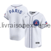 Jersey lifestyle inspiré MLB pour le PSG signé Nike. Base blanche avec piping bleu marine tout autour de la patte de boutonnage, écusson circulaire “PARIS” XXL en poitrine, Swoosh à droite et lettrage “PARIS” au dos. Manches courtes avec liserés contrastés et patch de manche. Maille légère & respirante, idéale pour la ville comme les jours de match.