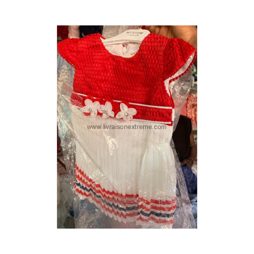 Robe bébé fille rouge & blanche – spéciale occasions ✨
