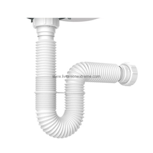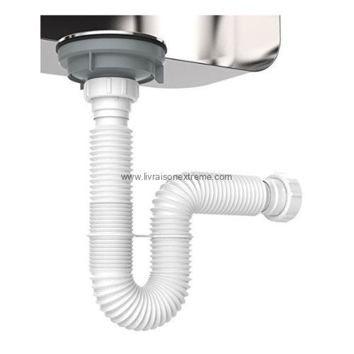 Le siphon flexible en PVC permet le raccordement facile et étanche entre la bonde d’un lavabo, évier ou lave-main et le tuyau d’évacuation mural.