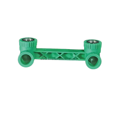 Ce support mural PPR permet de raccorder solidement un robinet mural sur une installation en tuyauterie PPR.