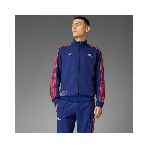 Cette tenue est un survêtement Adidas Arsenal, inspiré par la culture « terrace » des années 80, et comprend un haut de survêtement et un pantalon assorti.