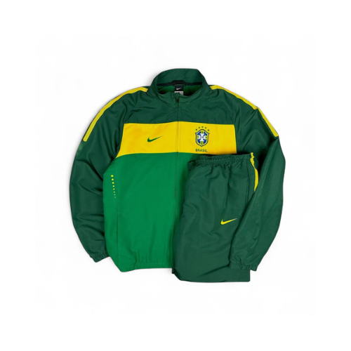 Cette tenue est un survêtement Nike Brésil pour homme, de couleur verte et jaune.